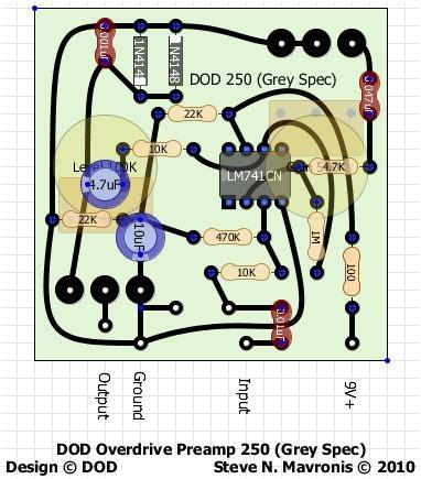 Dod Preamp 250 Schematic. The dod overdrive 250 is yet another 741 with two diodes on the output channel. It is almost exactly the same as.