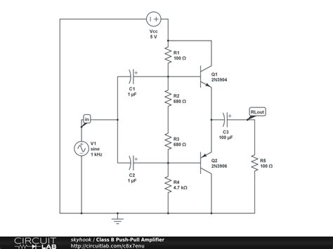 Web circuitry for a class b push pull amplifier is shown in fig. Web at its most basic, a push pull audio amplifier schematic is a diagram that illustrates how two separate amplifiers are connected to produce powerful stereo sound. Here one transistor supply’s the.